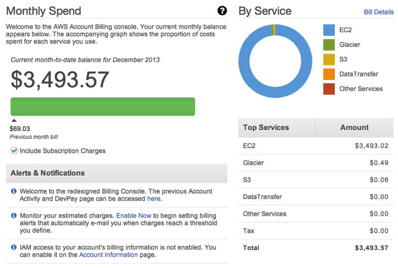 It didn’t take long to find the source of the billing. Twenty cc2.8xlarge instances humming along in the us-east region for the last two days.