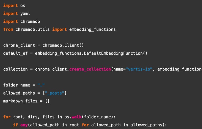collection = chroma_client.create_collection(name="vertis-io", embedding_function=default_ef, metadata={ "hnsw:space": "cosine" })
